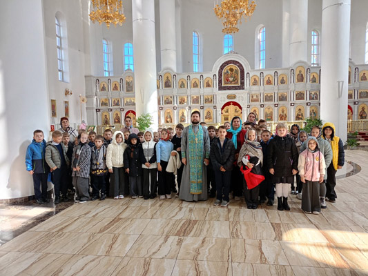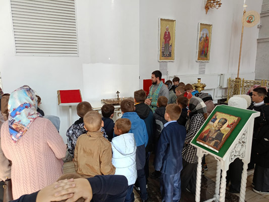 посещение собора. Батюшка показал детям важные части храма: алтарь, иконостас,
