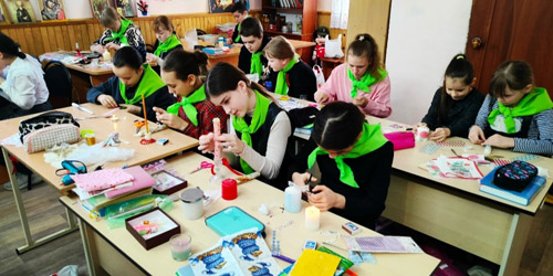 После беседы ребята приступили к творческому заданию — они оформляли свечу