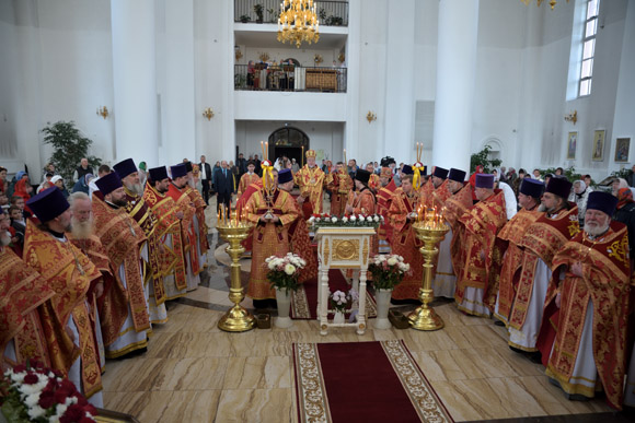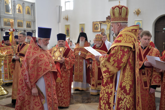 совершено торжественное соборное богослужение. В сослужении духовенства